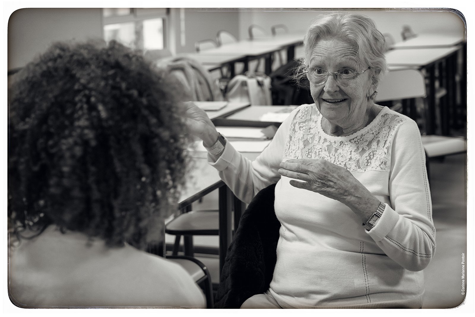 La photographe Corinne Mariane Pontoir accompagnera le projet. Elle captera des moments d’ateliers et de restitutions et réalisera une exposition afin de laisser une trace sensible du projet dans les deux pôles de l’Hôpital.